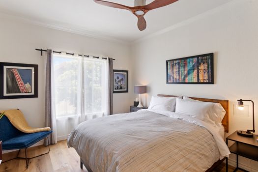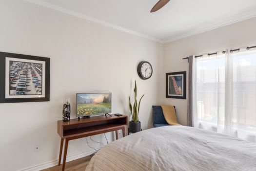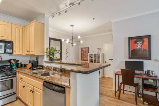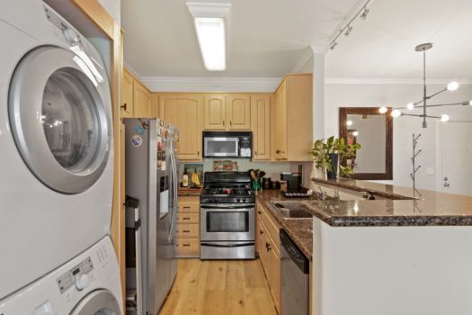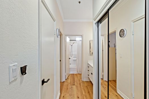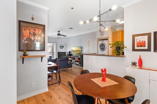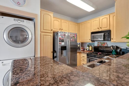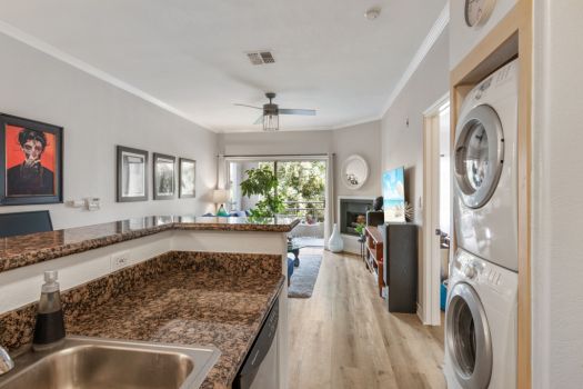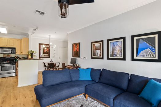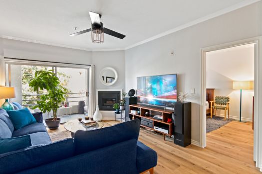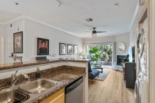 Centrally located in the heart of Pasadena! Situated in the Playhouse District, a few minutes from Old Town, South Lake, the world-famous Pasadena Playhouse, Vroman’s bookstore and the Metro Gold Line. Fusing urban living with Pasadena charm, this single level, two bedroom, two bathroom residence, greets with an open living space and abundance of natural light. This clean, updated condo boasts dual primary suites, ample closet space, recently updated flooring, nine foot high ceilings and modern design throughout. The kitchen offers stainless steel appliances, granite countertops, maple faced cabinets with a classically modern, T-knob to combine the contemporary style. Off the kitchen, the condo is equipped with an in-unit washer and dryer. The living room is furnished with a gas fireplace and access to the east facing, private covered balcony. The split floor plan consists of two bedrooms, complete with en-suite bathrooms, contemporary vanities and ample counter space. Both bedrooms feature walk-in closets, ceiling fans and a bonus closet located in one bedroom. El Molino Terrace residents enjoy a community BBQ area, pool, jacuzzi, fitness and recreation room. For easy and secure parking, one subterranean gated space is assigned near the elevator.